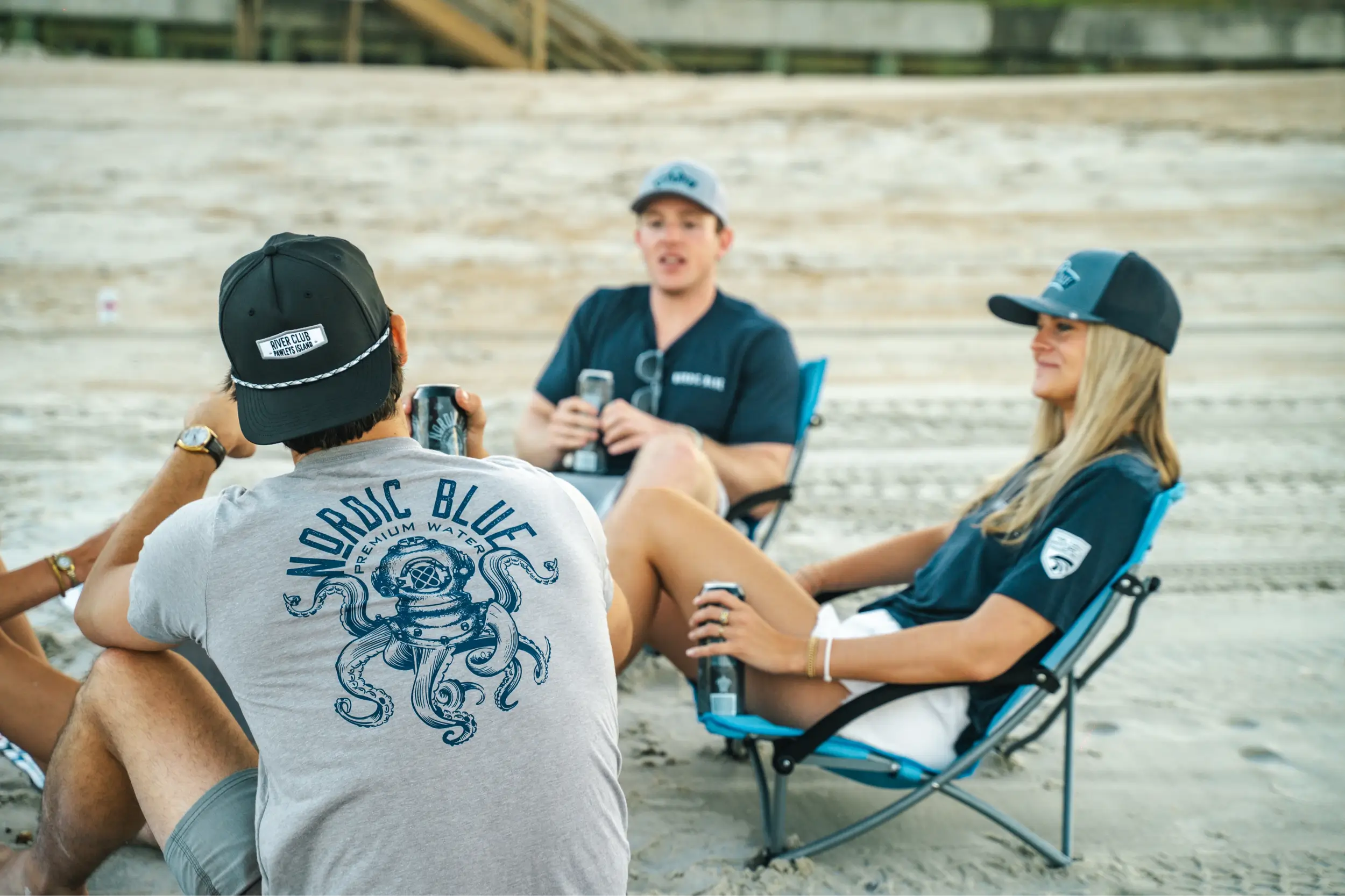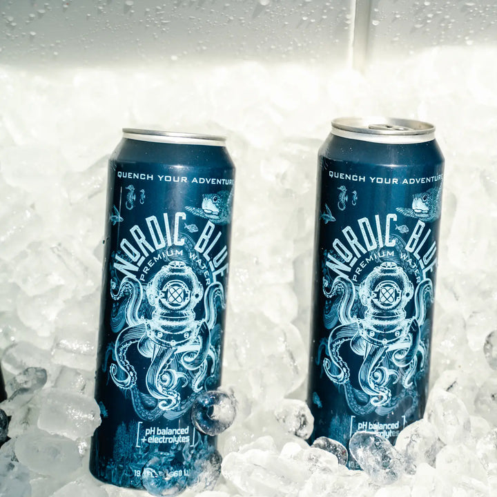 Inspired by the deep blue seas, Nordic Blue combines the natural purity of the ocean with the wild joy of living. Our world faces lots of challenges. We take the plunge into finding good solutions. Our mission is to hydrate people who live boldly while protecting our beloved marine ecosystem and supporting mental health for veterans and first responders. How? Earth’s best water, infused with revitalizing electrolytes, distilled into aluminum cans. Thank you for canning the plastic!